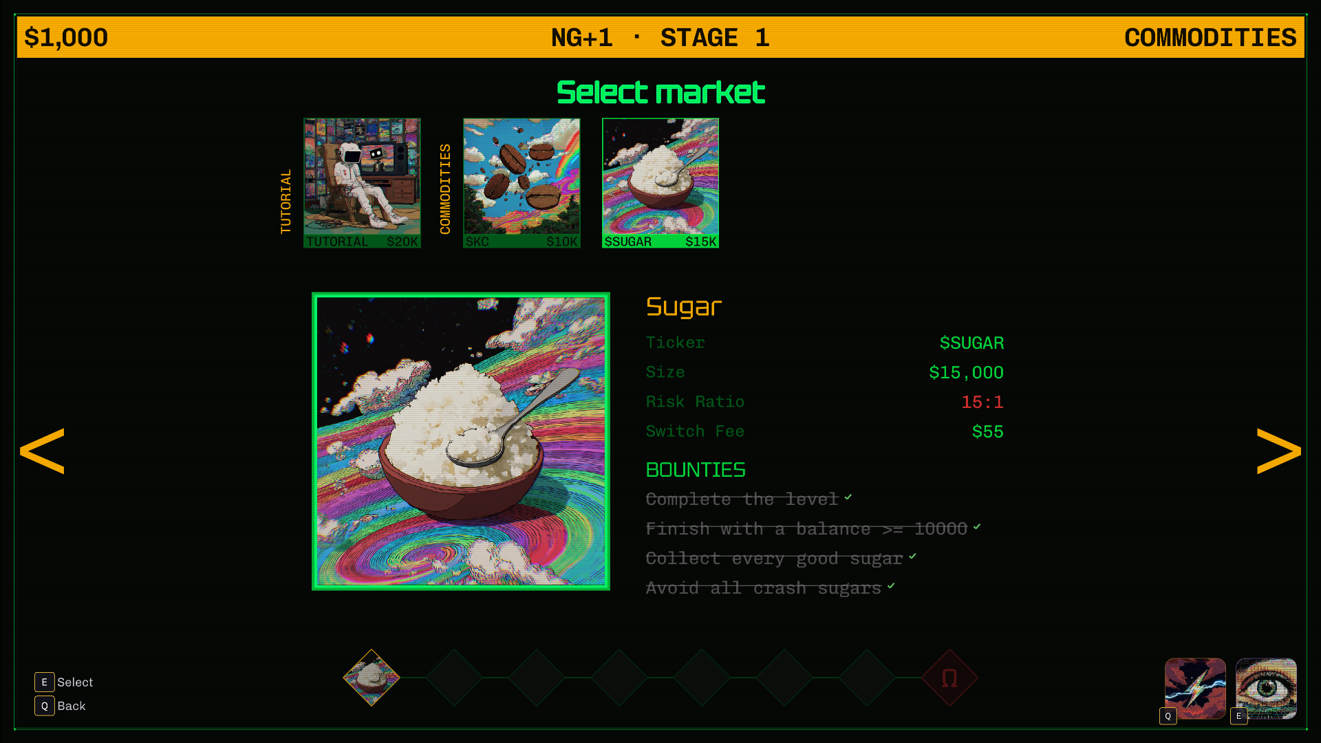 Pick which markets to tackle. Each one you choose shapes the rest of your run.